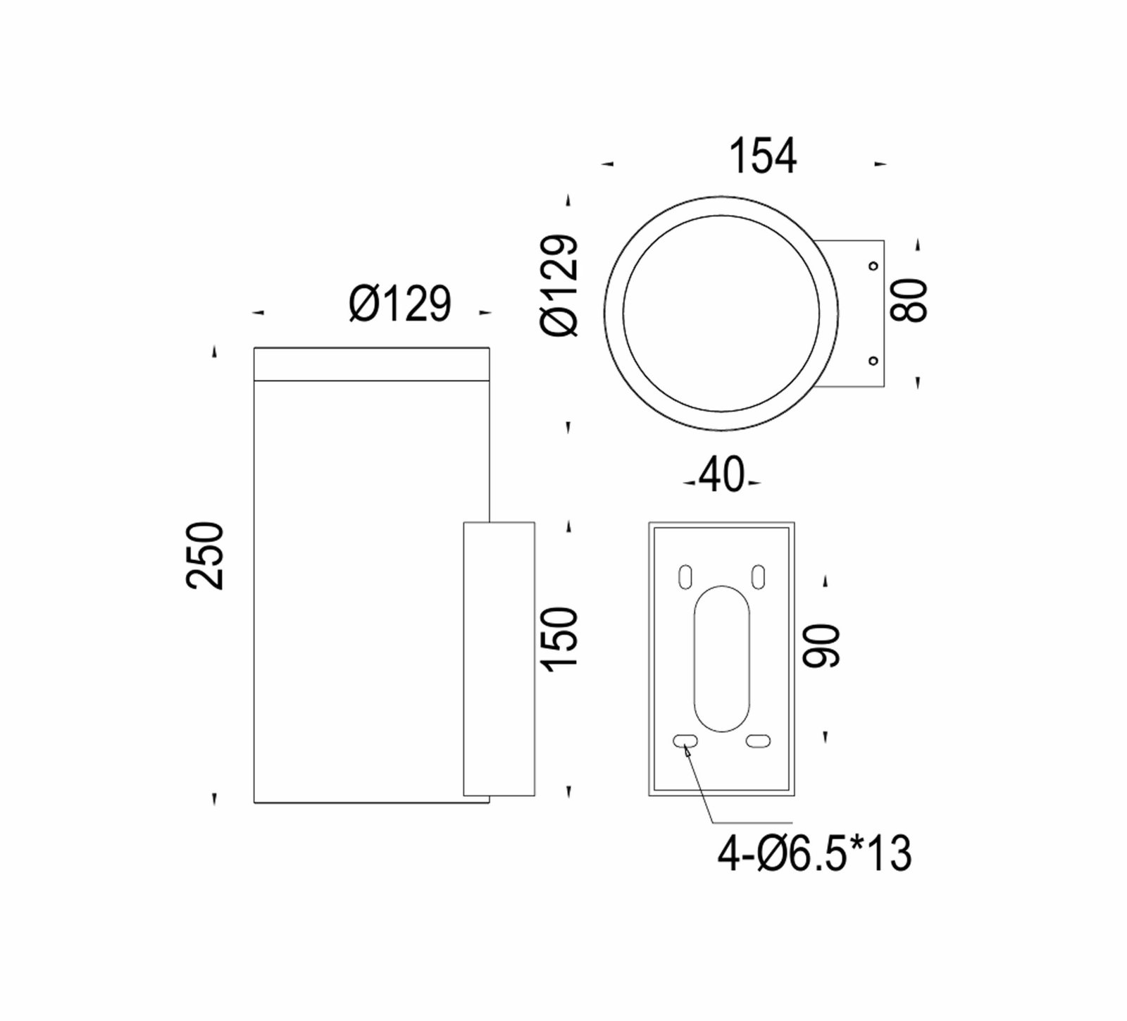 Dia: 129mm, Height: 250mm
