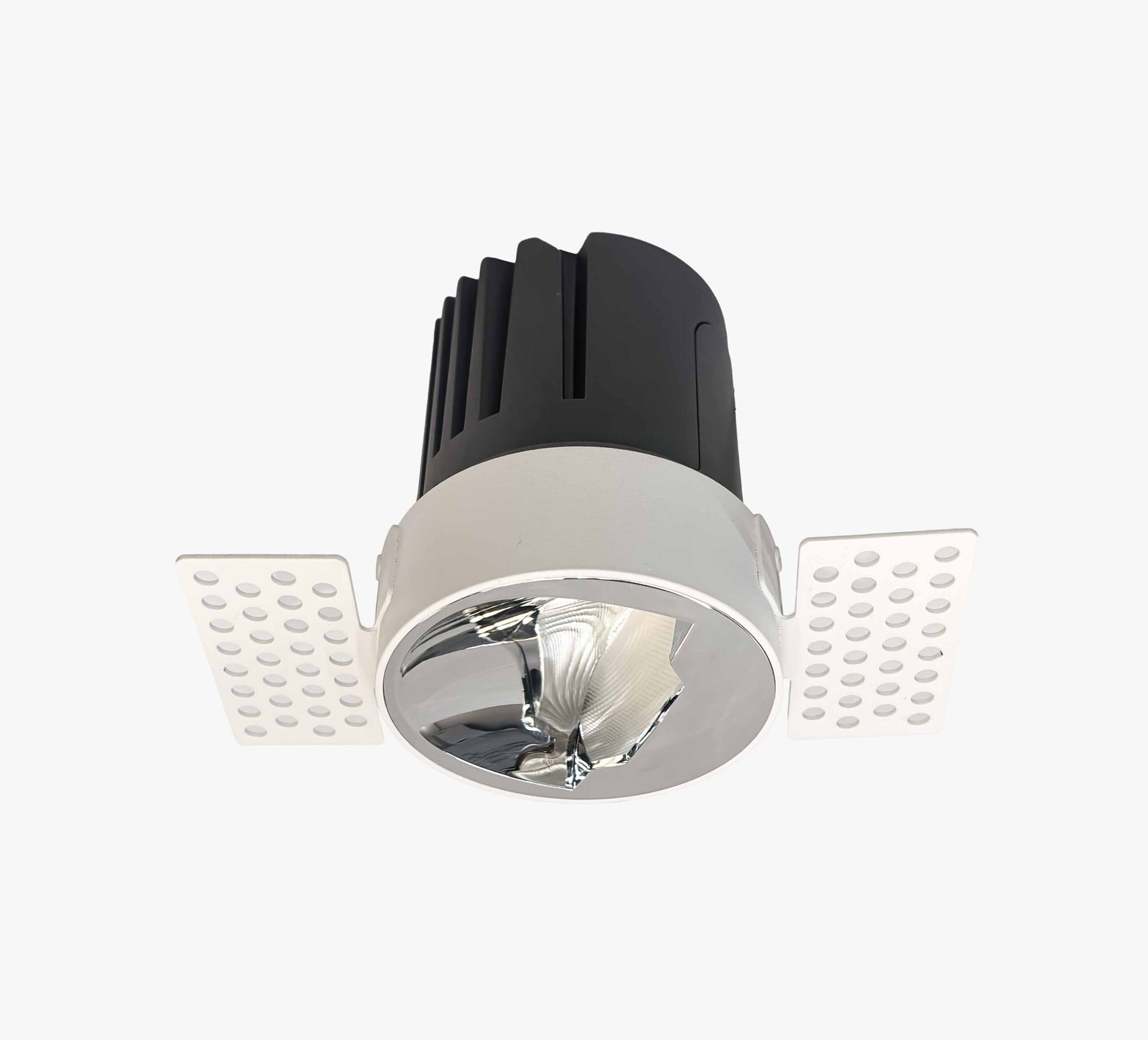 Asymmetric downlighter for wall washing made of die cast aluminium and fitted lens giving uniform lighting . Ideal for lighting up walls with wall paper or wooden cladding or marble cladding etc.