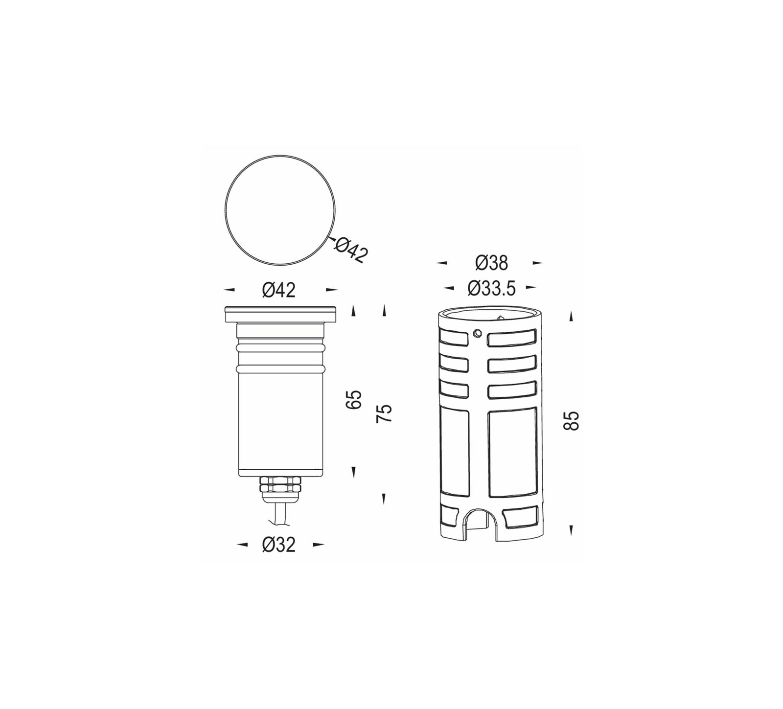 Dia: 42mm, Depth: 85mm