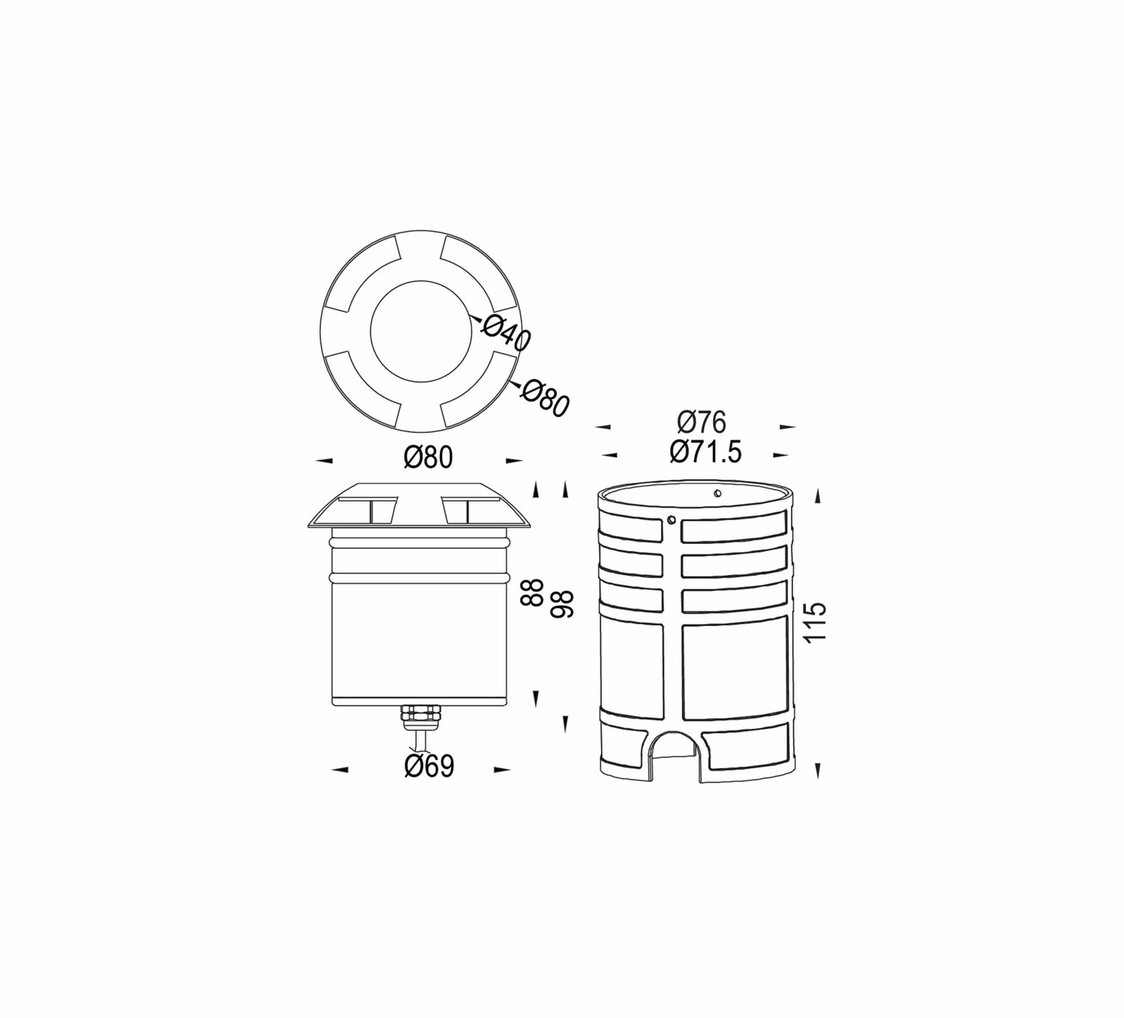 - SIZE: Dia: 80mm, Depth: 115mm