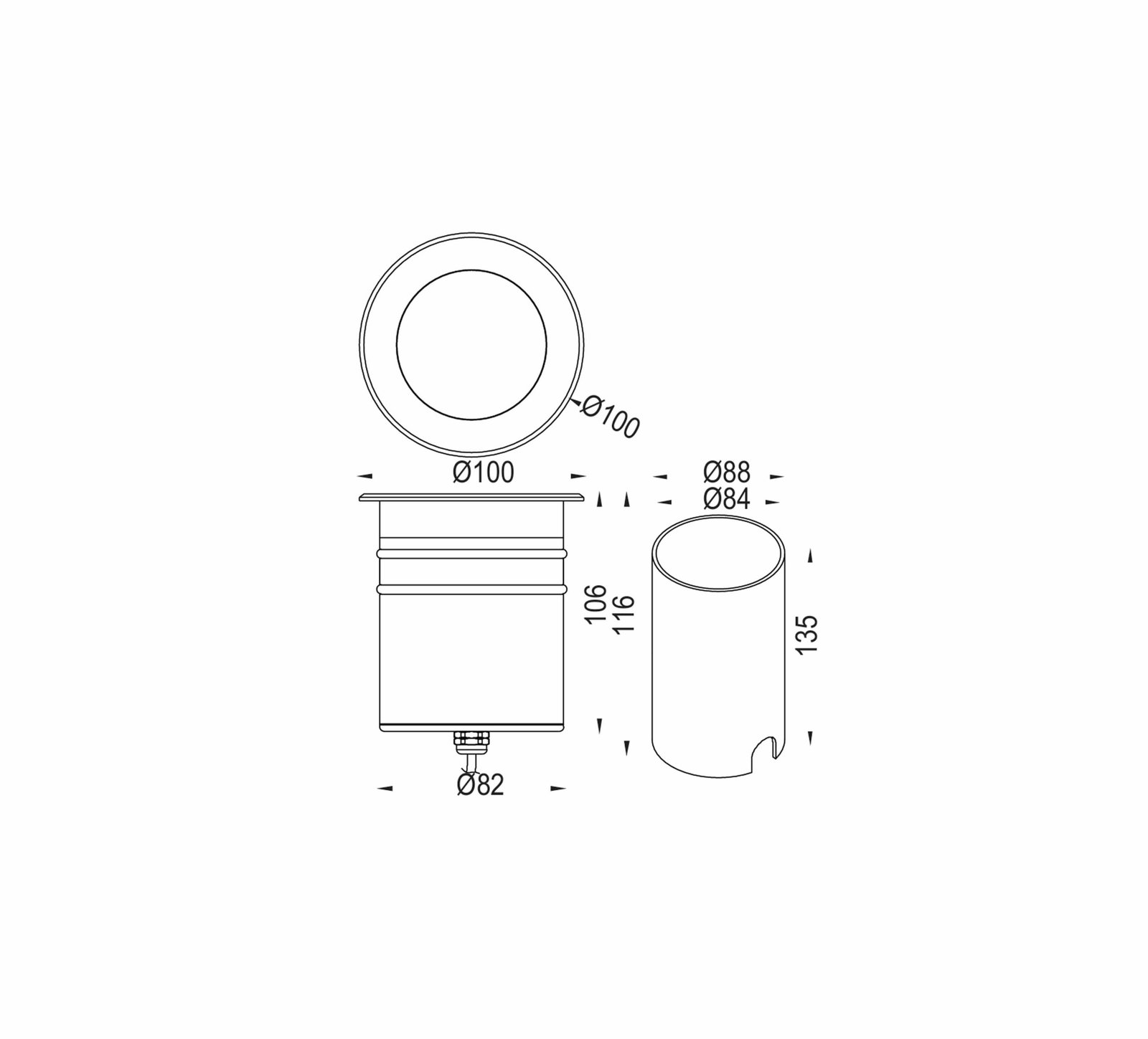 Dia: 100mm, Depth:135mm