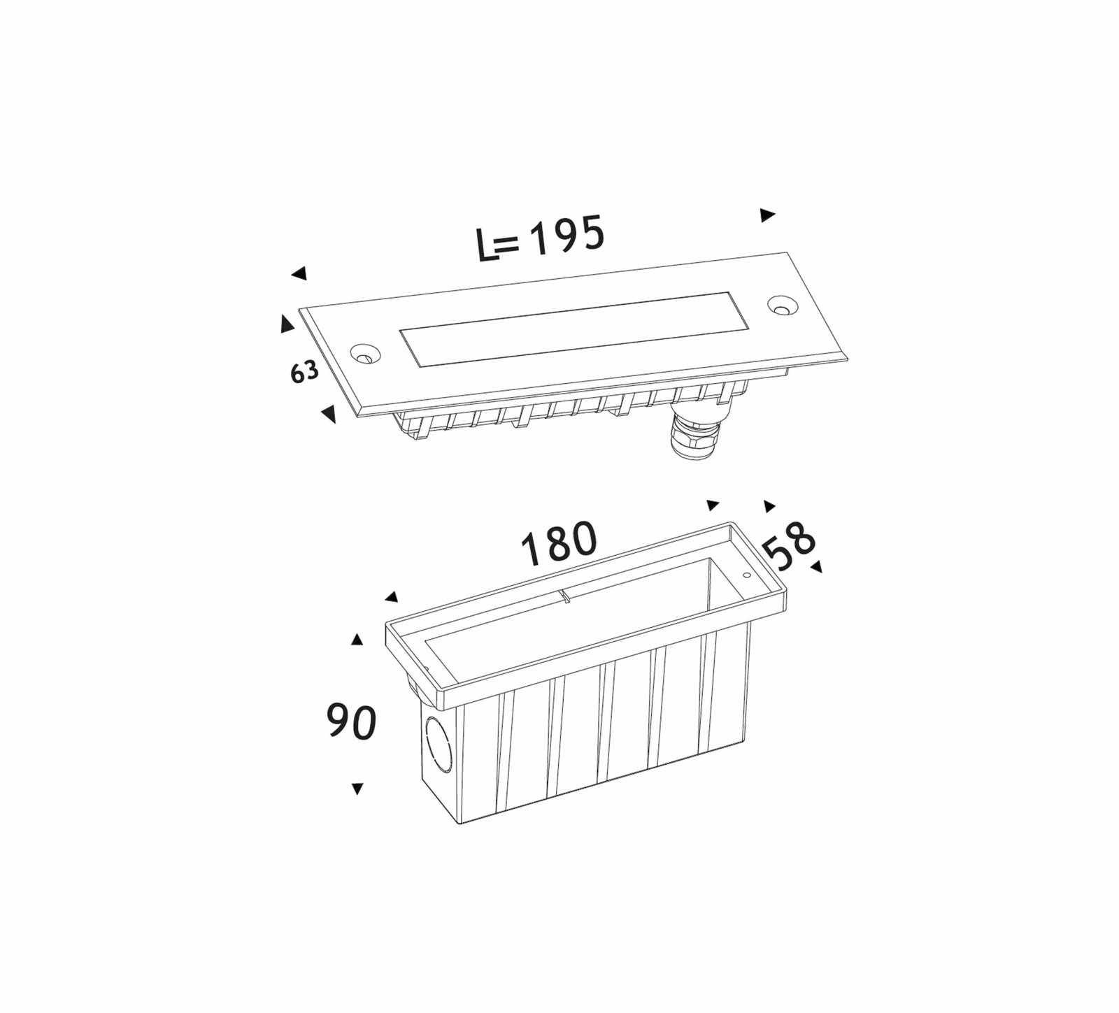 62x195mm, Depth: 90mm